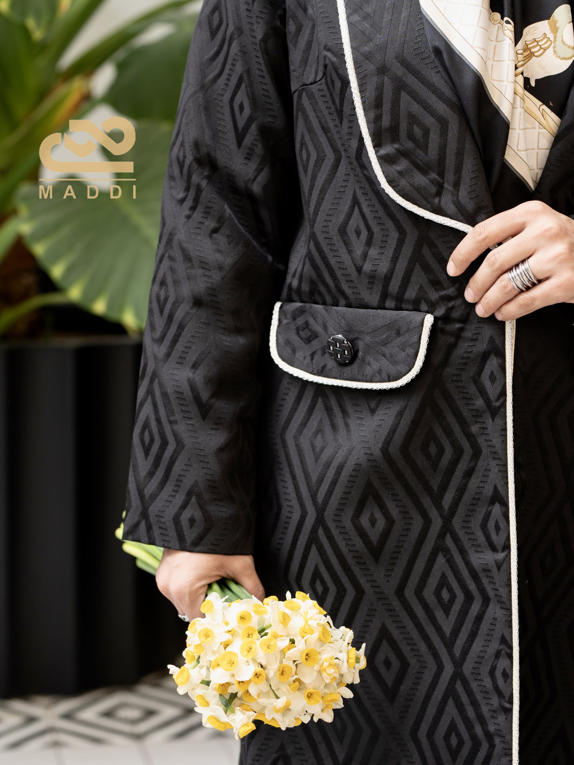 جنس ژاکارد بافت / کرپ / نوار دوزی شده همراه با جیب نمایشی / دگمه دار / یقه آرشال / قد کار 90 سانت / سایز بندی / سایزها 38 الی 48 / سایزها پنج عدد با هم متفاوت هستن /برای شستشو بهتر است خشکشویی شود.